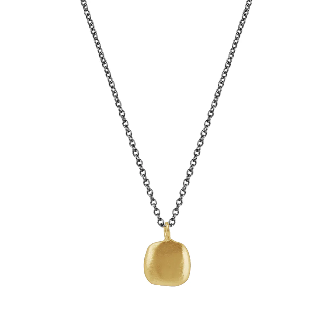Puffy square in 14k gold w. .02ct diamond necklace by Philippa Roberts. choose from a 14k gold, silver, or oxidized silver 16" chain. pendant hangs approx .75". Item# 124-39gdn/sgdn/sgdno. Spruce up your display with the Philippa Roberts Fine Collection! Featuring some of our most popular pieces in 14k Gold.